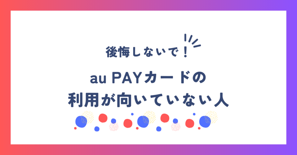 また、auサービスを利用しない方にとっては、au PAYマーケットの最大10%還元やau PAY連携での1.5%還元などの主要メリットも活用できません。