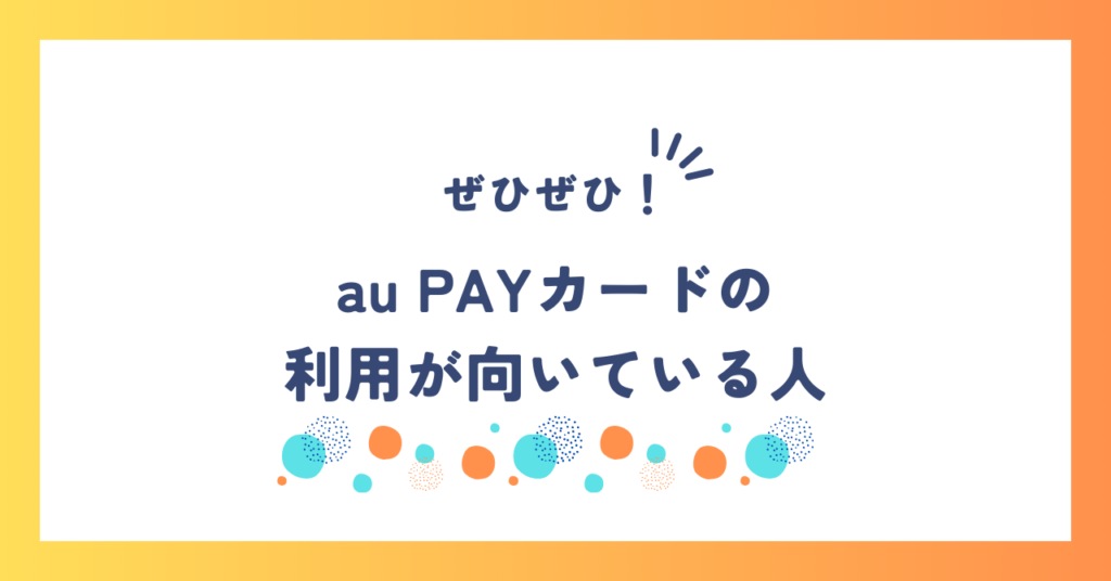 日常の支払いを一枚にまとめてポイントを効率的に貯めたい方、年会費無料で高還元率を求める方、au PAYを活用したキャッシュレス決済を頻繁に利用する方におすすめです。