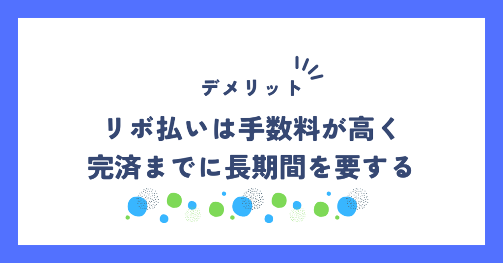 月々の支払い負担を軽減できる一方で、年率15~18%という高い手数料による総支払額の増加と返済期間の長期化で負担が増えます。