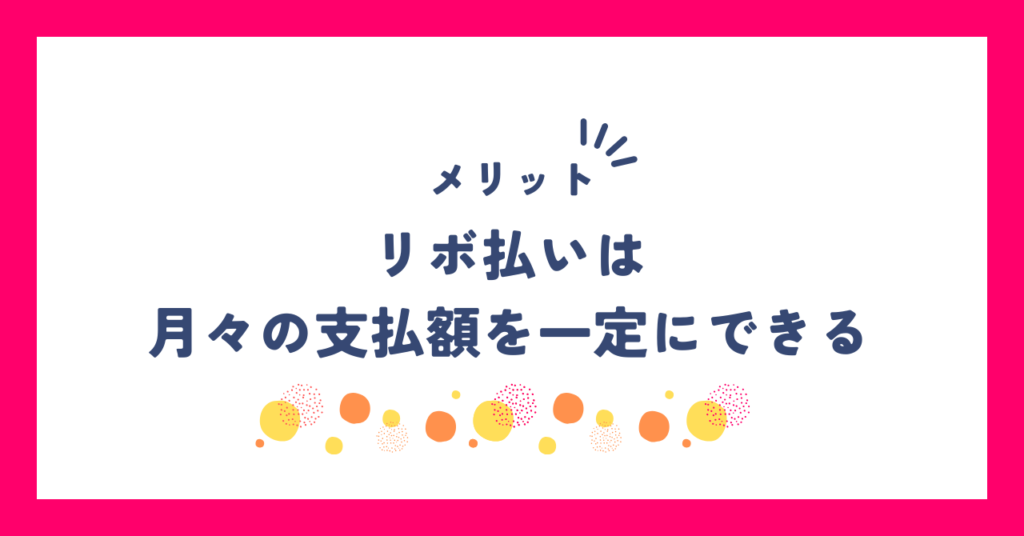 リボ払いのメリットは、高額な買い物をしても月々の支払額を一定に抑えられることです。